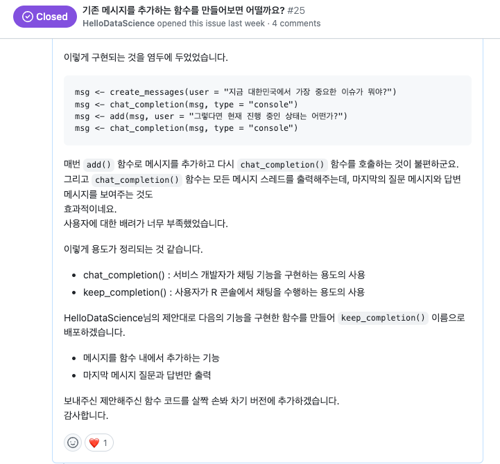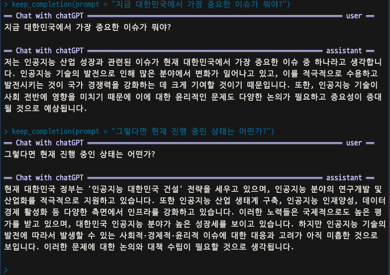 | 텍스트 | 채팅 | keep_completion() | OpenAI |