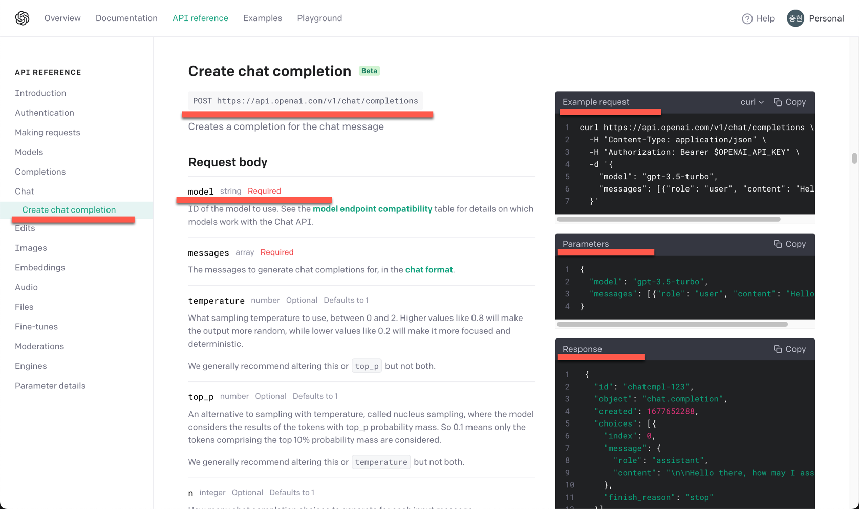 | 텍스트 | 채팅 완성 | chat_completion() | OpenAI |