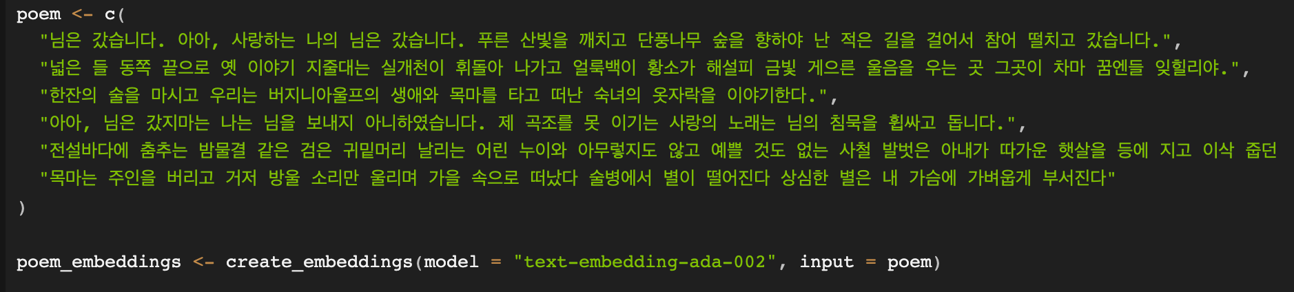 | 텍스트 | 임베딩 | create_embeddings | OpenAI |