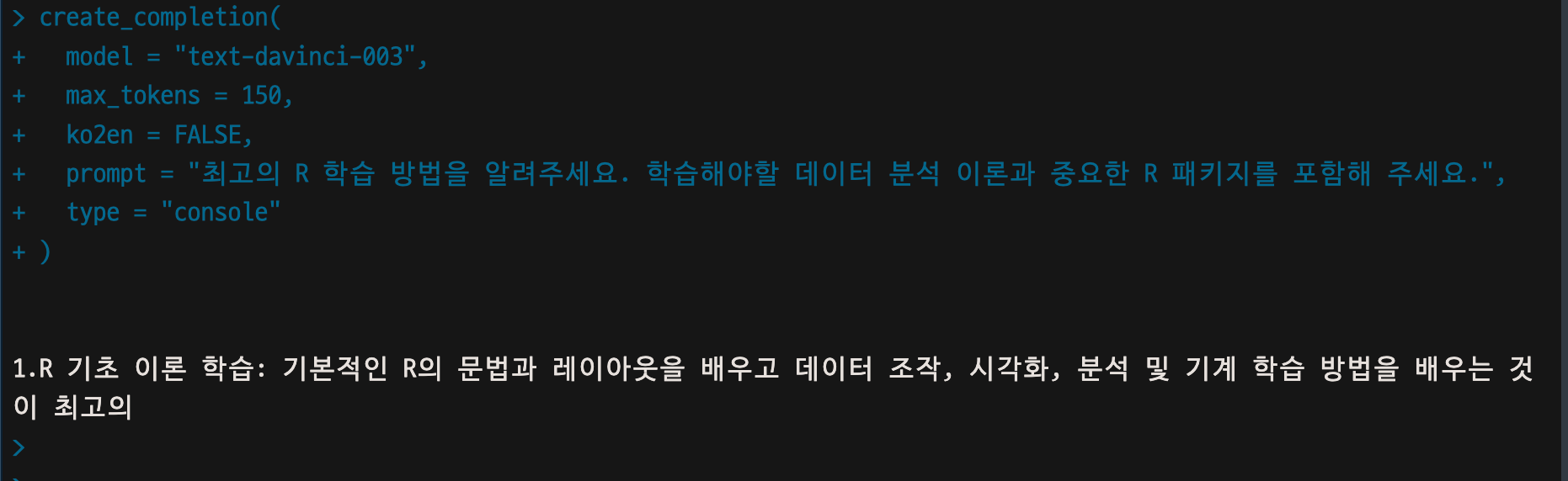 | 텍스트 | 텍스트 완성 | create_completion() | OpenAI |